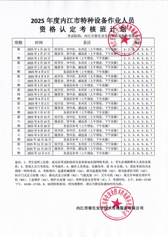 關(guān)于2025年內(nèi)江市特種設(shè)備從業(yè)人員開始考試的緊急通知