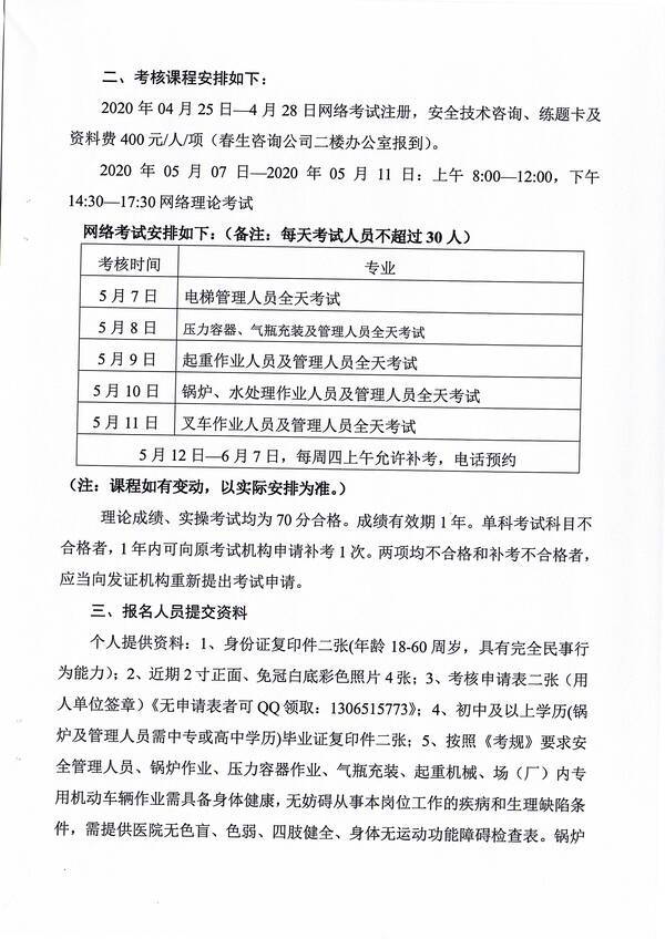 2020年第二期特種設備作業(yè)人員考核培訓班的通知