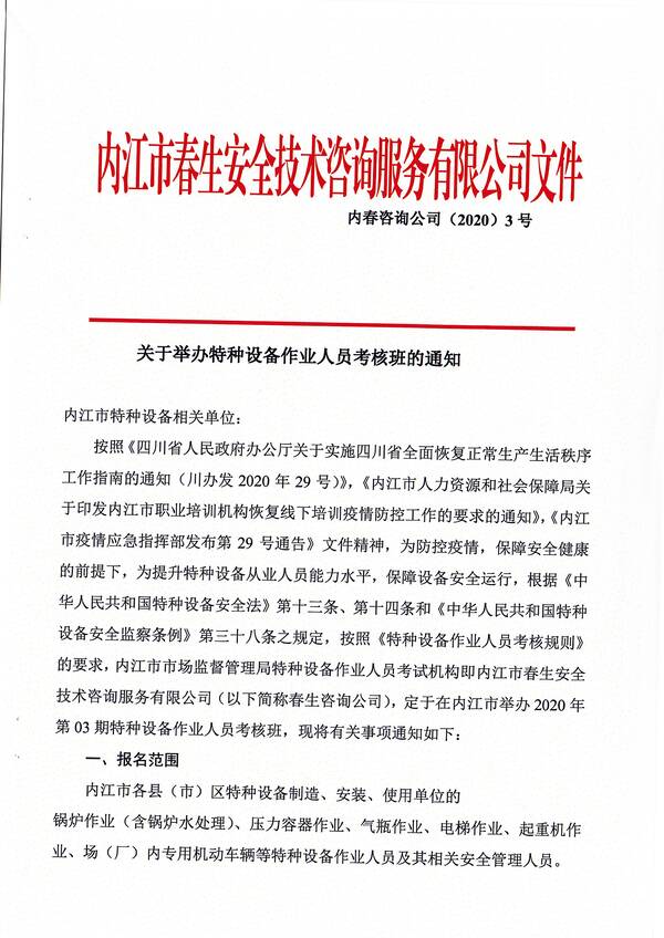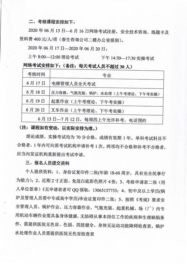 2020年第二期特種設(shè)備作業(yè)人員考核培訓(xùn)班的通知
