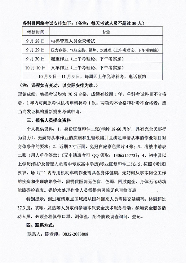 2020年春生公司06期特種設備作業(yè)人員考核班通知