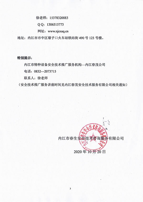 2020年春生公司06期特種設備作業(yè)人員考核班通知