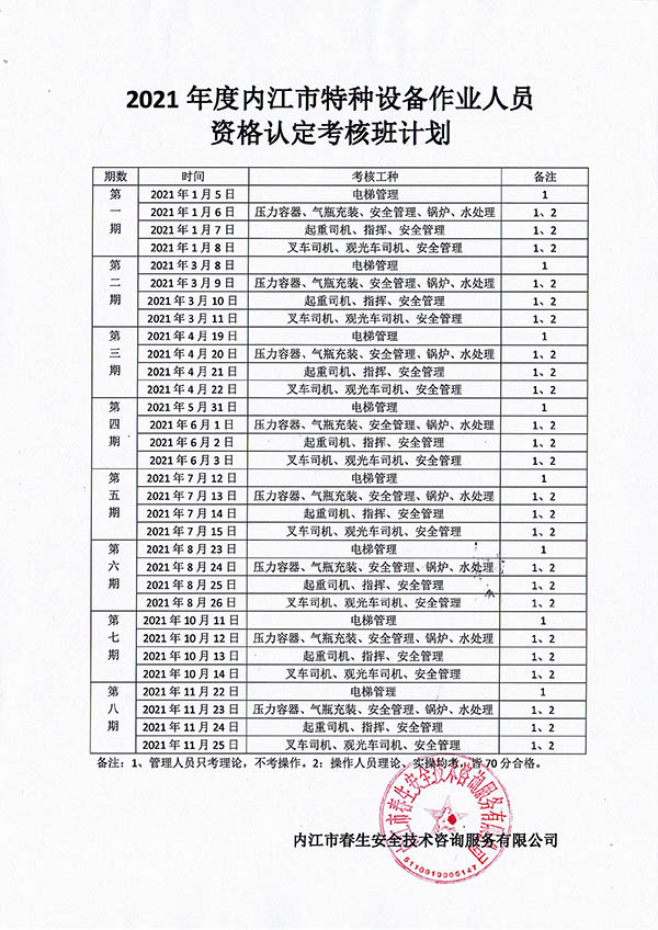 2021年春生公司02期特種設(shè)備作業(yè)人員考核班通知